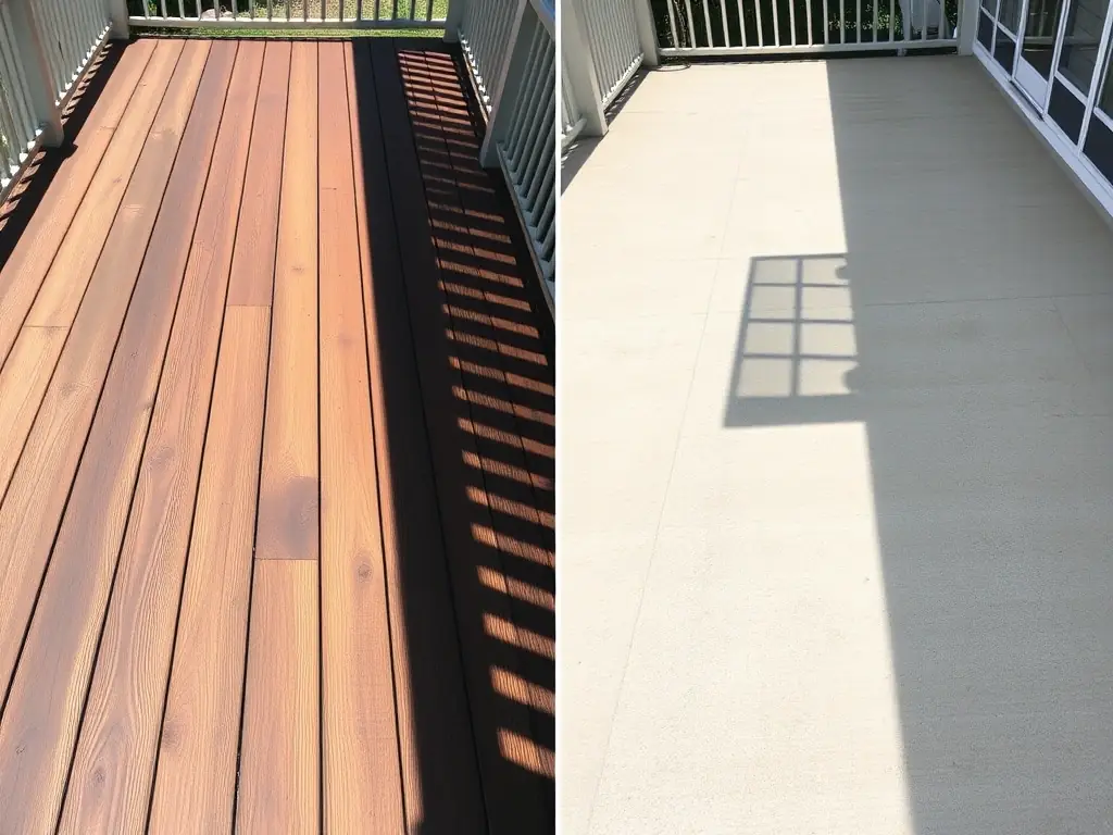 - Before: Weathered and damaged deck.